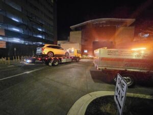 It wasn’t the best lighting for photos out there in the forest, but the job went safely and smoothly. Within minutes, the vehicle was free and the customer was back on their way.